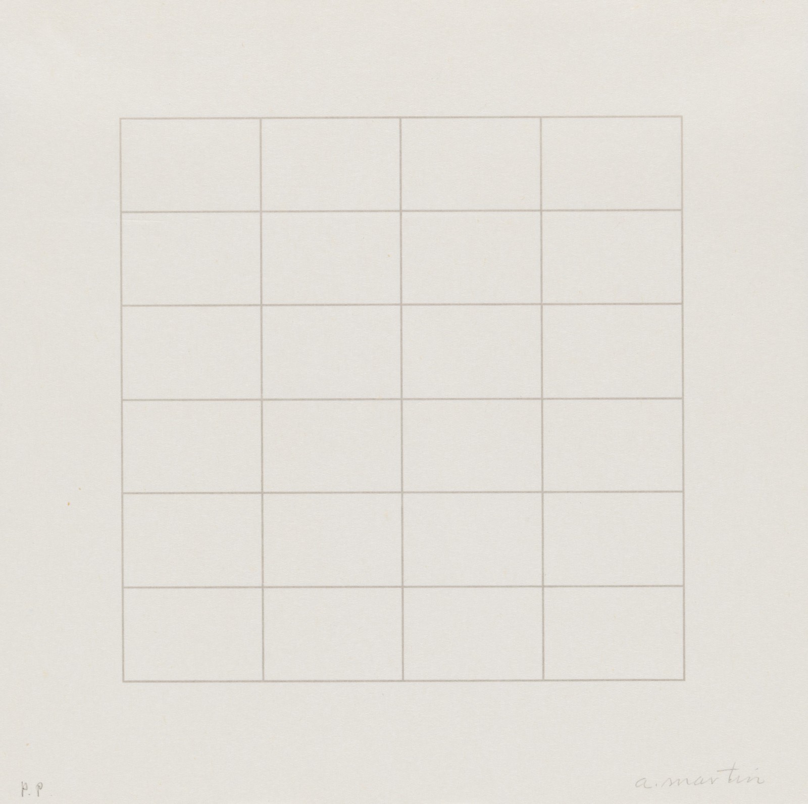 Image: Agnes Martin, Untitled from the portfolio On a Clear Day, 1973, screenprint, Los Angeles County Museum of Art, purchased with funds provided by the Kotick Family Foundation in honor of Lynda and Stewart Resnick through the 2007 Collectors Committee © 2016 Agnes Martin/Artists Rights Society (ARS), New York, photos © Museum Associates/LACMA