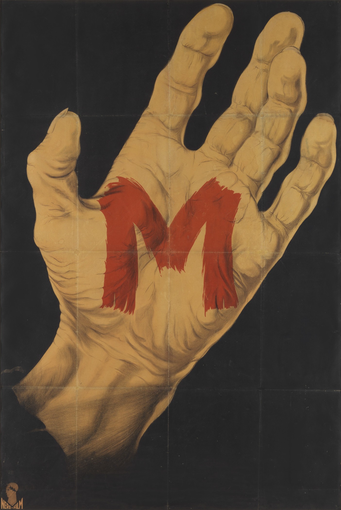 Image: Unknown, "M", 1931, Germany, Lithograph printed in black, beige and red on wove paper mounted on linen, Dimensions: Image: 53 1/8 x 35 7/16 in. (134.94 x 90.01 cm); Sheet: 55 1/2 x 37 in. (140.97 x 93.98 cm), Gift of the Robert Gore Rifkind Collection, Beverly Hills, CA, Los Angeles County Museum of Art, Robert Gore Rifkind Center for German Expressionist Studies, M.2003.115.9.