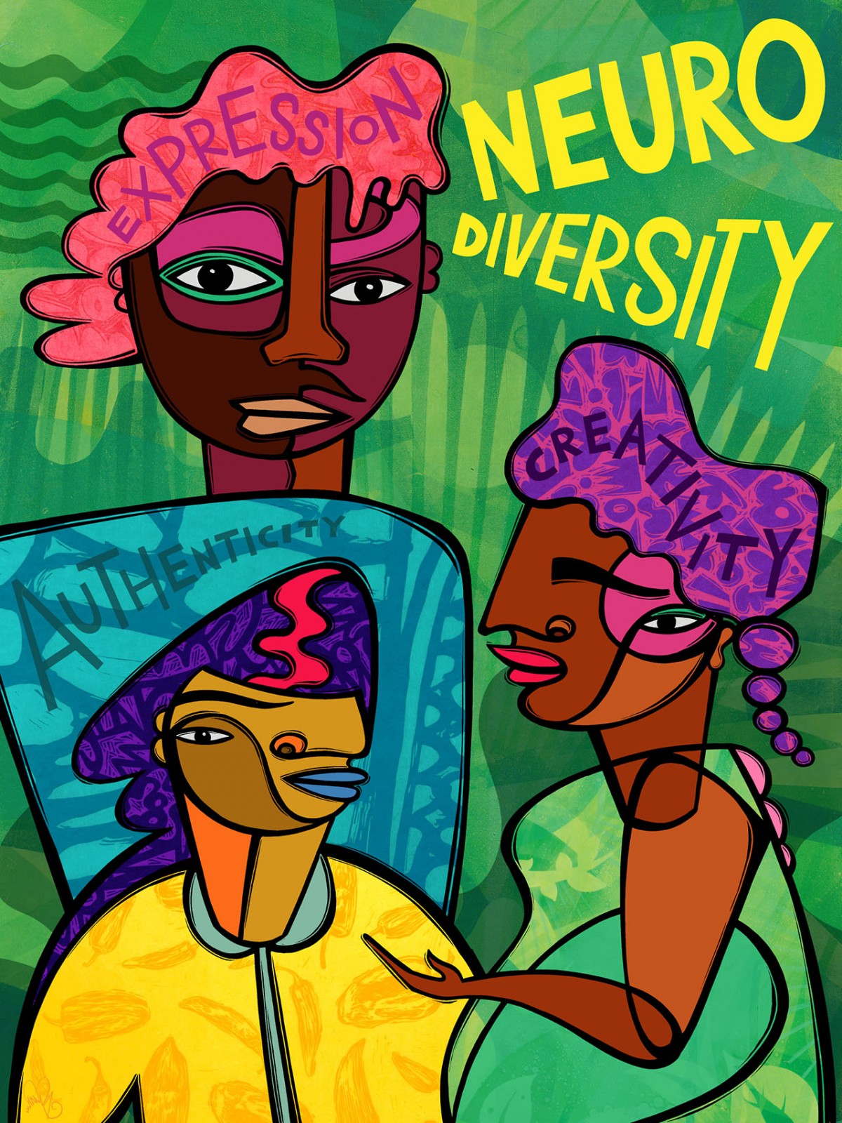 The Mind’s Eye looks inclusively at art and creativity as they intersect with a diverse range of perspectives, taking into account the unique experience, imaginative potential, and specific struggles that may come with neurodiversity. Developed as part of WE RISE 2021 in honor of Mental Health Awareness month, LACMA has commissioned graphic works by five artists to be displayed on vinyl clings installed along the construction fence on Wilshire Boulevard. Scoli Acosta, Andy Alexander, The Revolution School, Favianna Rodriguez, and Kerry Tribe all use a range of aesthetic strategies—from figurative painting, to text-based conceptual works, to game structures—to create a series of posters that evoke the myriad possibilities for meaningful connection and communication within human experience. As we collectively work to envision and shape a future that centers diversity, equity, and inclusion, a deeper understanding of neurodiversity can offer models of resilience, authenticity, and innovation.