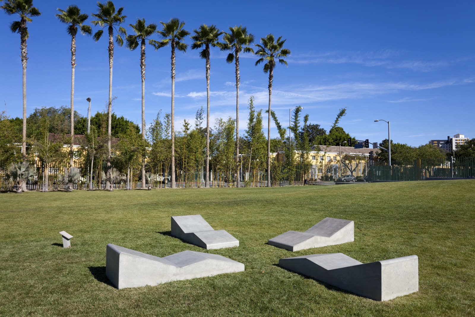 Margolles has used this format previously, presenting a set of six benches at Jardin Botánico Culiacán, in Culiacán, Mexico, intended as monuments to the dead where spectators might find peace in the tragedies. The new works at LACMA, on the other hand, function as what the artist describes as "perfect embodiments of the spirit of evil," asking those that might engage with them to feel the overwhelming energy of aggression that produced the infused material. However, the elegant, minimal aesthetic of the work, their placement (per the artist's request) in a beautiful, outdoor space, and their value as a place of rest and contemplation for a passing viewer suggest the possibility for brutality and poetry to coexist.