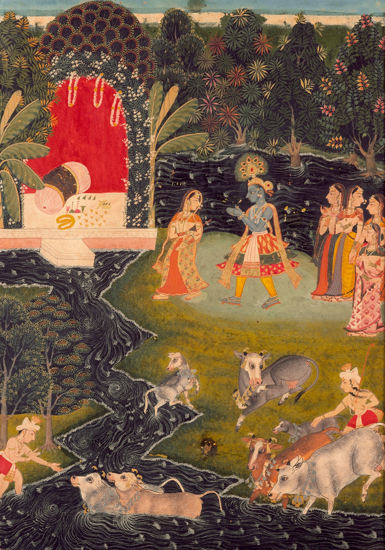 Lovers stealing out for secret trysts under cover of stormy nights, visits to the monsoon retreats of holy men, and divine beings associated with sources of water and rain are among the pictorial subjects in this exhibition, which explores visual representations of the rainy season in India.