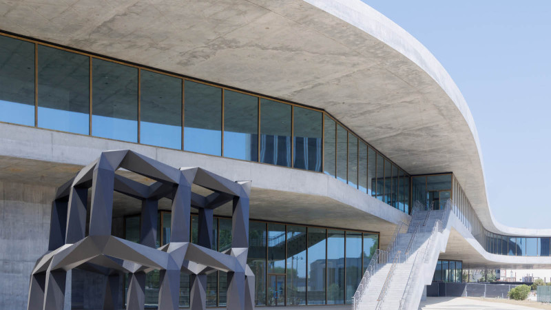 Image Credit: David Geffen Galleries at LACMA; exterior view from East West Bank Commons southeast toward Wilshire Boulevard with Tony Smith’s Smoke (1967) in foreground, © Tony Smith Estate/Artists Rights Society (ARS), New York, photo © Iwan Baan