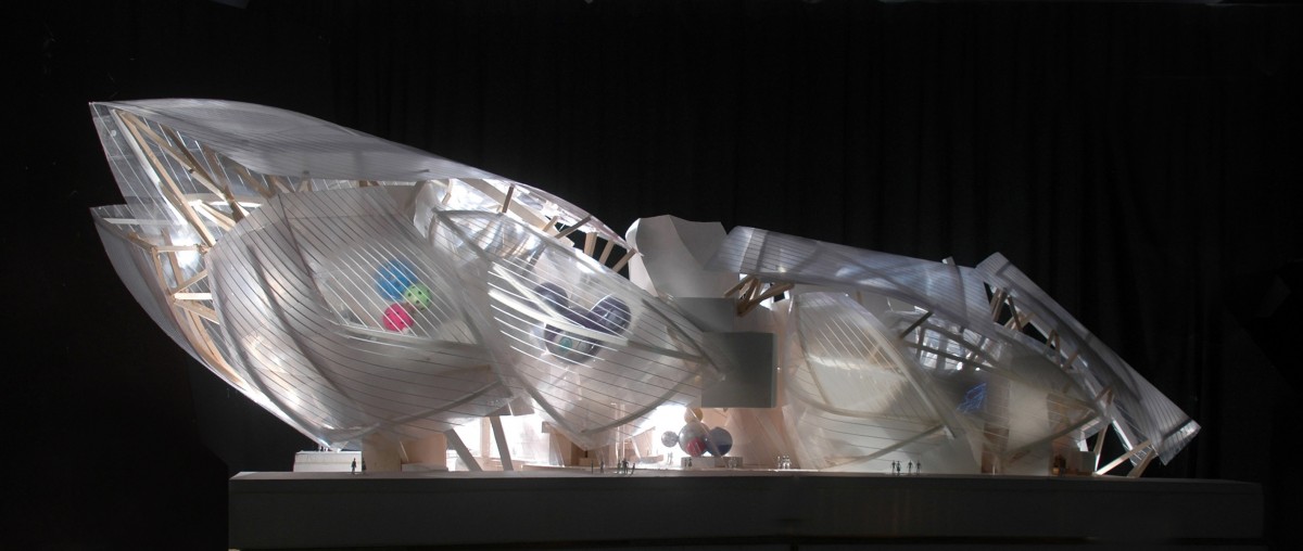 Top Image: Frank Gehry, Fondation Louis Vuitton Final Design Model, 2005–14, Paris, France, Gehry Partners, LLP, Los Angeles. Bottom: Frank Gehry, Walt Disney Concert Hall Project Sketch, 1991, Los Angeles, California, Collection Frank Gehry, Los Angeles. Both © 2015 Gehry Partners, LLP, images courtesy Gehry Partners, LLP.
