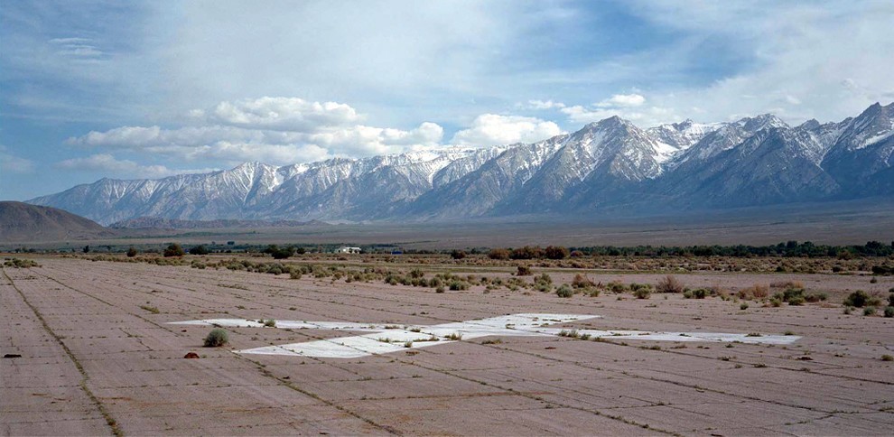 Image: Andrew Freeman, Abandoned runway, Manzanar Airport (from the X; N36°44.585’, W118°08.763’), 2005, Los Angeles County Museum of Art, Purchased with funds provided by the Photographic Arts Council, 2006 and the Ralph M. Parsons Fund, © Andrew Freeman.