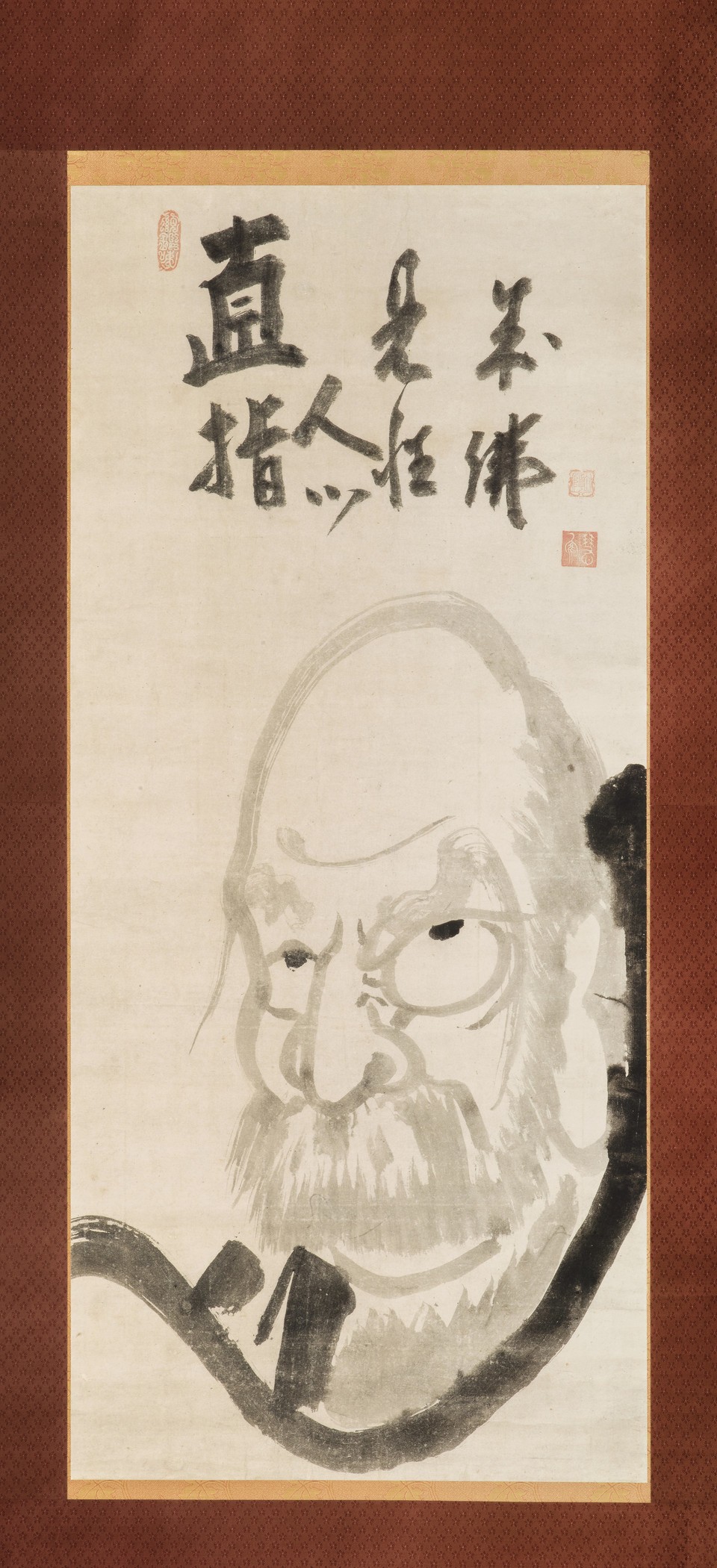 Image: Hakuin Ekaku, Japan, 1685 1769, Daruma, 18th century, Hanging scroll; ink on paper, Image: 44 1/2 x 19 3/4 in. (113.03 x 50.17 cm); Mount: 77 3/4 x 25 in. (197.49 x 63.5 cm), Gift of Murray Smith. M.91.220.
