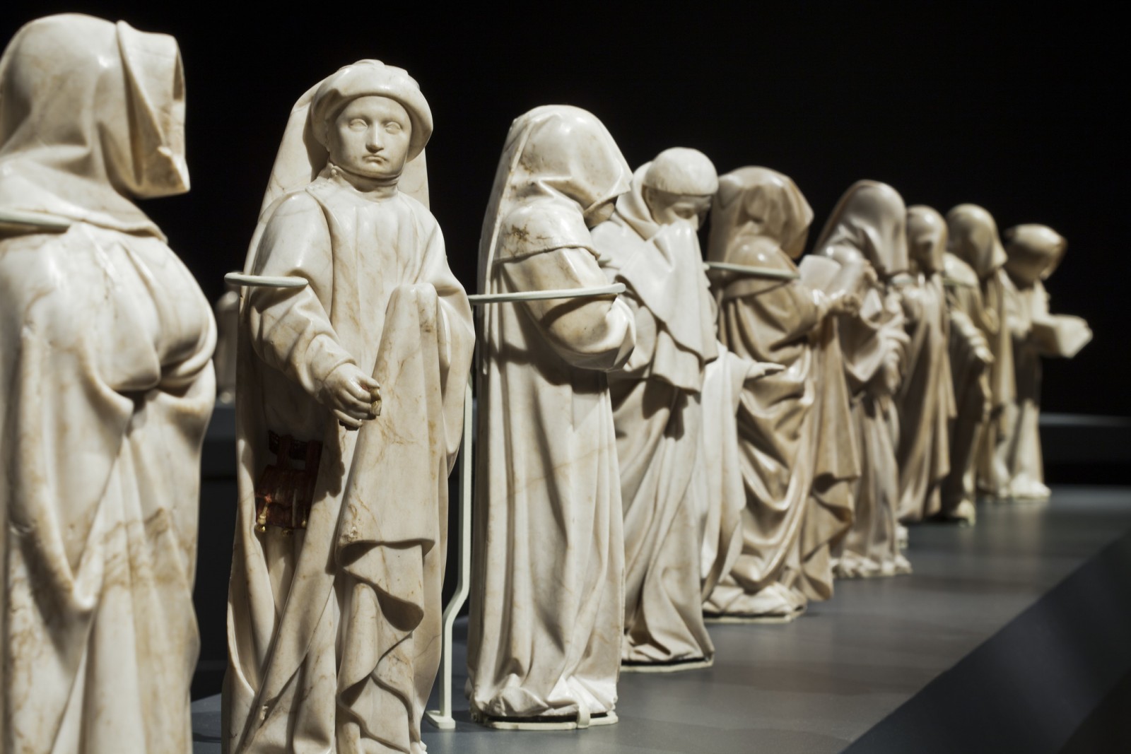 The Mourners: Tomb Sculptures from the Court of Burgundy features thirty-seven sculptures from the tomb of John the Fearless (1371–1419), the second duke of Burgundy. His elaborate tomb, once housed at a monastery on the outskirts of Dijon, is now one of the centerpieces of the Musée des Beaux-Arts de Dijon.
