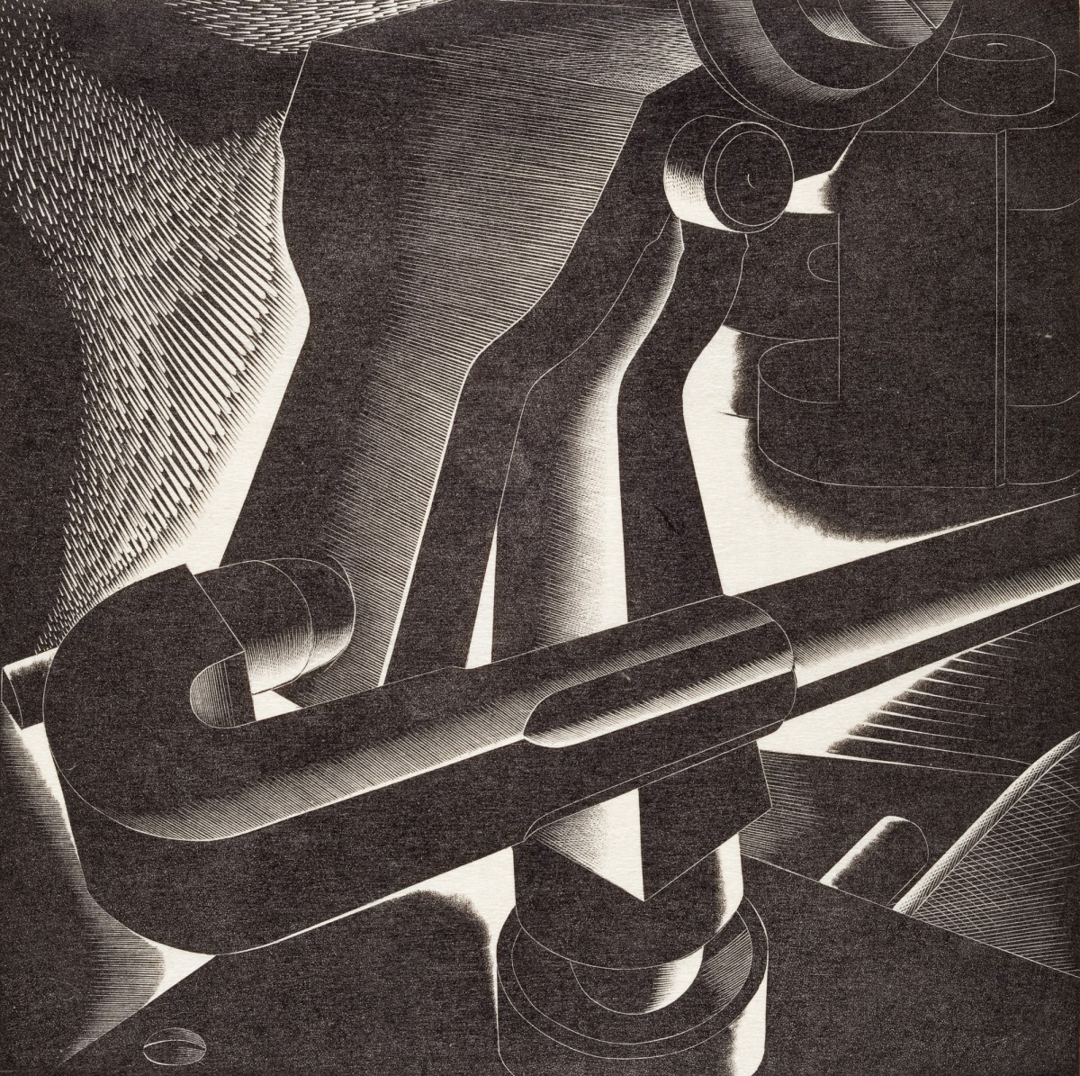 Paul Landacre, The Press, 1934, Los Angeles County Museum of Art, gift of Mr. and Mrs. Joseph M. Landacre and Mrs. Barbara McCreery, © 2025 Estate of Paul Landacre / Licensed by VAGA at Artists Rights Society (ARS), NY, photo © Museum Associates/LACMA